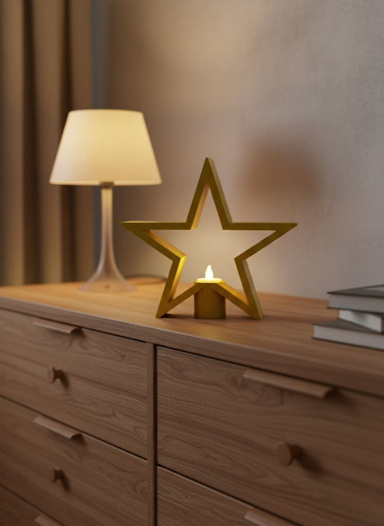 Yıldız Şeklinde Sarı Mumluk Loş Işık Ev Aksesuarı –